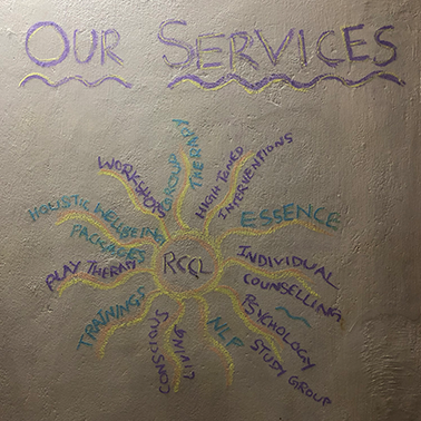 The services I offer are individual counselling, play therapy and group therapy.