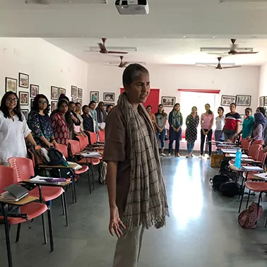 Over the years, Sampoorna has conducted various workshops including Counselling and Self-Concept, Preventing Burn-Out, using Drama in psychotherapy, Listening and Body Language, Communication, Motivation, Power of the Mind, Re-fueling the Engine, Soft skills Training, Empowerment of Women, Relationship building among corporate executives and spouses, Participatory Communication, Anger, Stress and Time Management, Decision-Making, Strengthening Identity, Conflict Resolution, Leadership and Growth as well as organising an Orientation Course for Lecturers. She is also constantly developing unique workshops targeted towards specific goals. Recent ones include Fluid Boundaries, Resolving resistance, Being, Spontaneity vs Boredom, Overcoming inertia and strengthening identity.